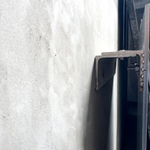 壁面への取り付けは、パネル裏面にM6のスタッドボルトを溶接し、そこにアングルをボルト止めして下地に固定する構造としています。